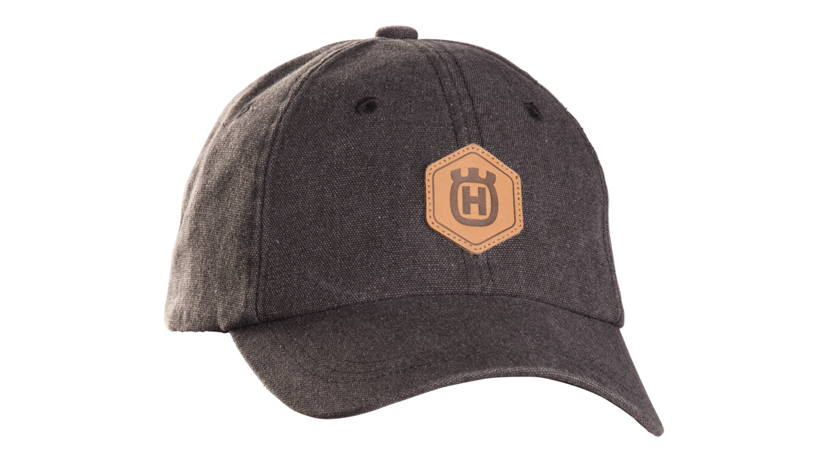 En granitgrå canvas-keps med justerbart läderband. Bandet baktill gör att du lätt kan justera kepsen för perfekt passform.